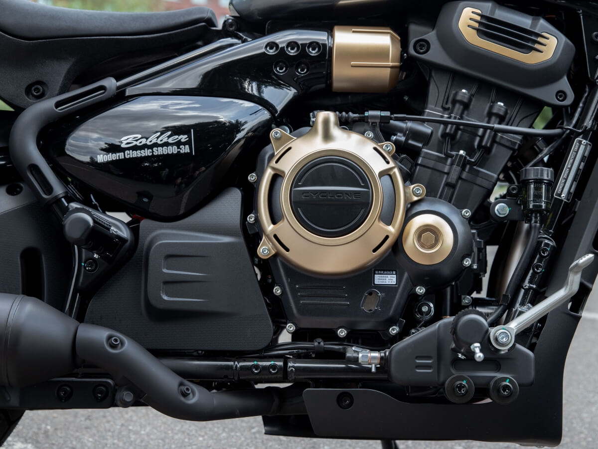 RA600 оснащён 2-цилиндровым 4-тактным двигателем ZS550SR с 8 клапанами, 2 верхними распредвалами, жидкостной системой охлаждения и инжектором BOSCH. Двигатель имеет комфортный расход топлива для ежедневных поездок, оптимальная длина передач позволяет легко маневрировать в потоке, а максимальная скорость мотоцикла составляет 165 км/ч.