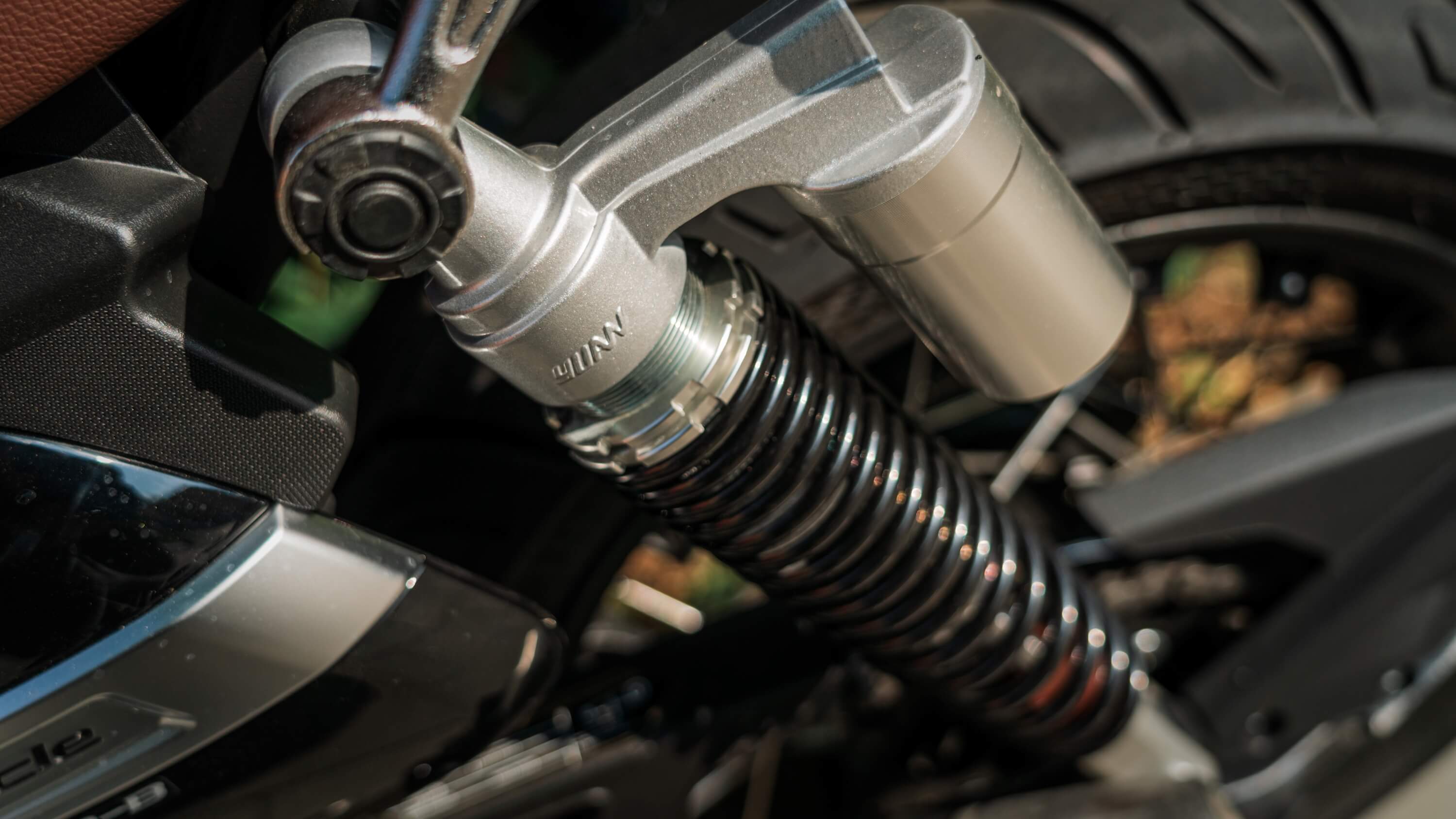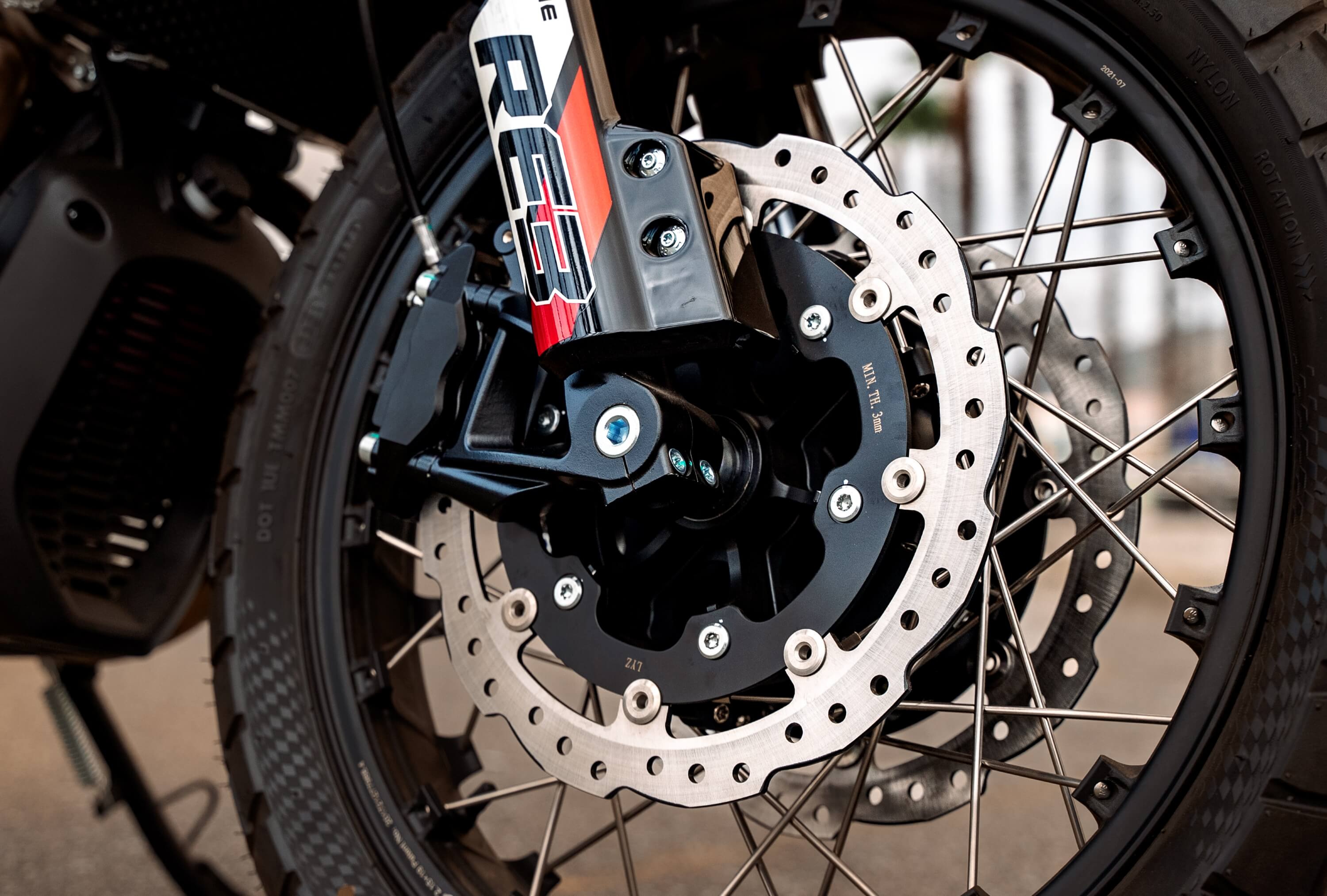 Мотоцикл оснащён классическими спицованными колёсами диаметром 17 и 19 дюймов и имеет достаточно большой дорожный просвет – 22 см. С неровностями дороги эффективно справляются телескопическая вилка перевёрнутого типа спереди и маятник с двумя амортизаторами сзади. Ход передней подвески составляет 130 мм, задней – 81 мм. Оба компонента подвески являются регулируемыми. Эффективное и безопасное замедление с любых скоростей обеспечивают гидравлические дисковые тормоза с ABS спереди и сзади.