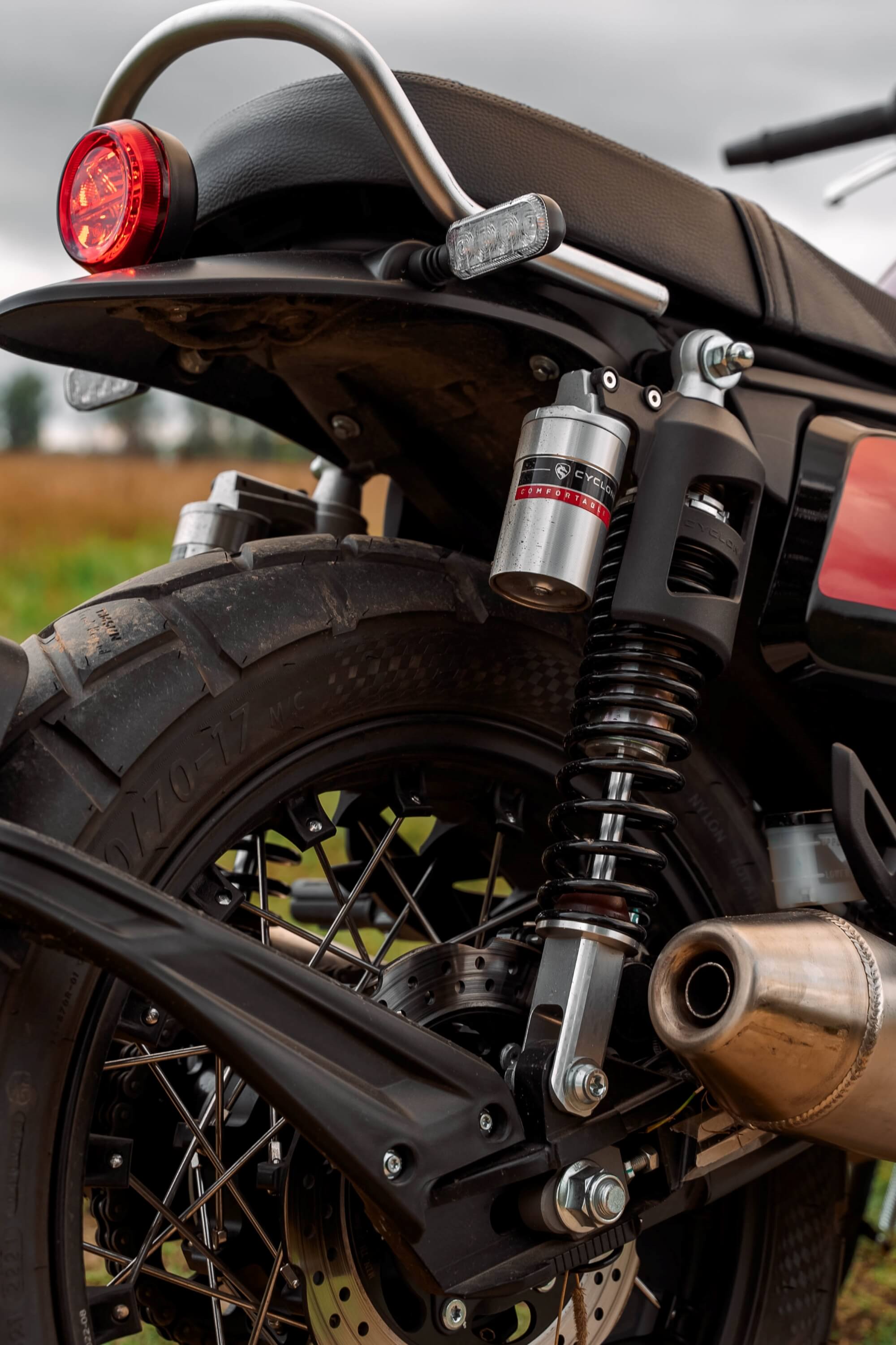 CYCLONE RE3 Scrambler (SR400-A) – универсальный мотоцикл, объединяющий в себе черты городского мотоцикла и эндуро. Управляя им, можно бросить вызов и городским пробкам, и скоростным автострадам, и всевозможному лёгкому бездорожью. Его дизайн отдаёт дань уважения каферейсерской тематике.