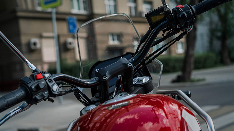 Руль широкий, немного приподнят. Управление лёгкое, а развесовка позволяет вести мотоцикл спокойно.