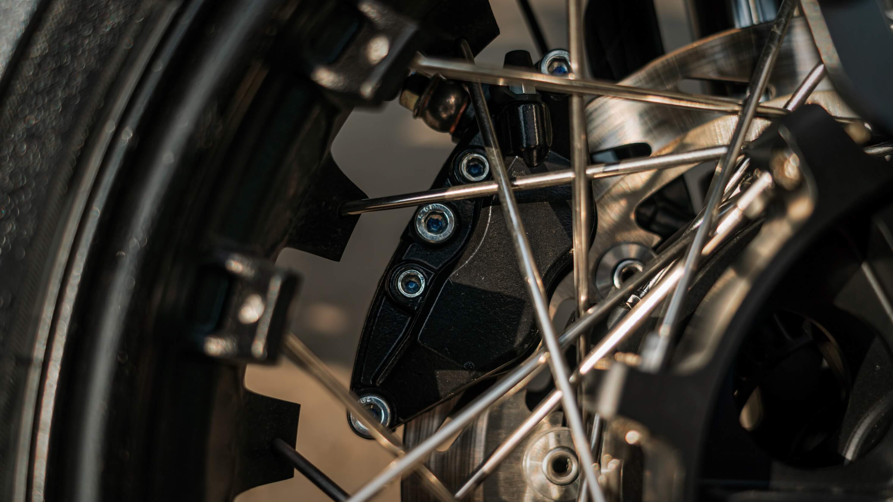 Мотоцикл оснащён классическими спицованными колёсами диаметром 17 дюймов. Колёса обуты в бескамерные покрышки TIMSUN. С неровностями дороги эффективно справляются телескопическая вилка перевёрнутого типа спереди и маятник с двумя амортизаторами сзади. Ход передней подвески составляет 130 мм, задней – 81 мм. Оба компонента подвески являются регулируемыми. Эффективное и безопасное замедление с любых скоростей обеспечивают гидравлические дисковые тормоза с ABS спереди и сзади.