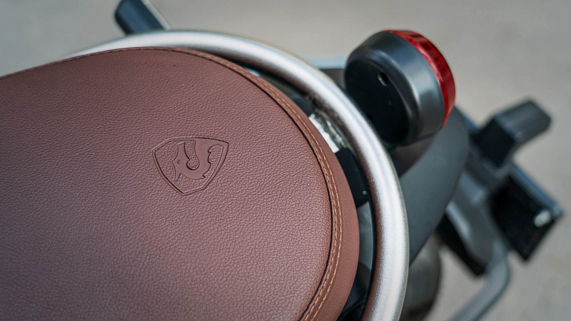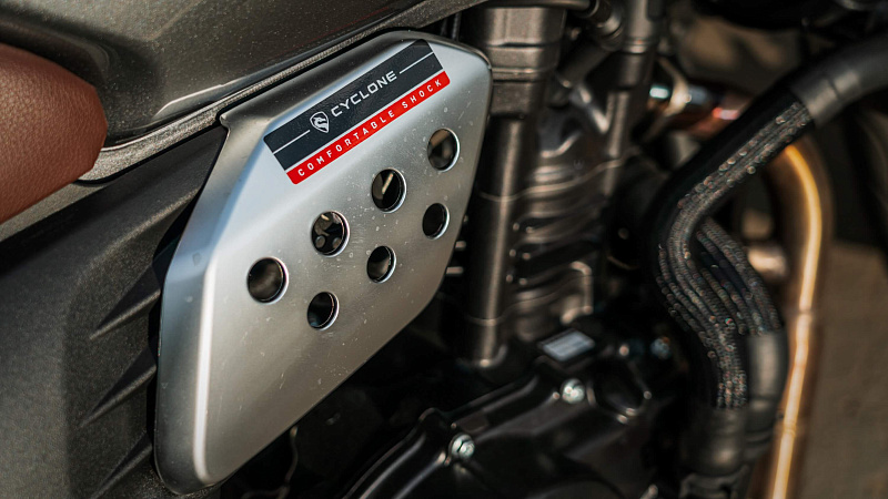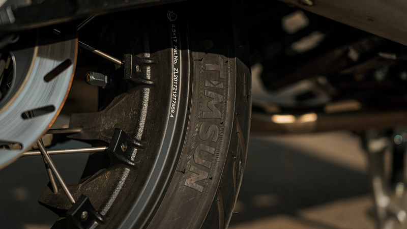 В модели используются спицованные 17-дюймовые колёса, обутые в бескамерные покрышки TIMSUN. Такой выбор обеспечивает отличный баланс между классическим внешним видом и возможностями: шины уверенно держат траекторию и позволяют комфортно чувствовать себя как на прямой, так и в поворотах.