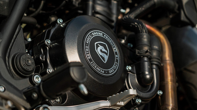 В основе RE401 лежит современный 2-цилиндровый 4-тактный двигатель объёмом 401 см³, выдающий 43 л.с. при 9500 об/мин. Силовая установка демонстрирует живой отклик, хороший запас тяги и уверенное поведение в диапазоне от средних до высоких оборотов.