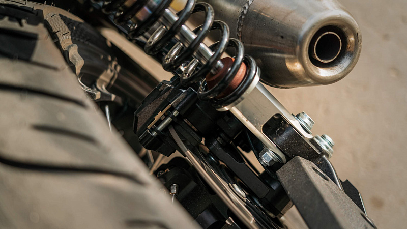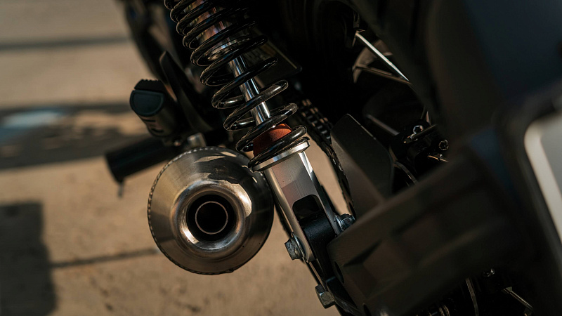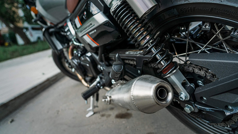 Задняя маятниковая конструкция с двумя регулируемыми амортизаторами с ходом 81 мм эффективно справляется с динамическими нагрузками и даёт мотоциклу необходимую адаптивность при смене ритма езды или загрузки.